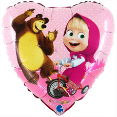 G Шар (18''/46 см) Сердце, Маша и Медведь, Розовый, 1 шт.