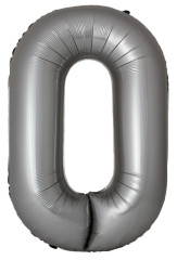 Ф Шар (40''/102 см) Цифра, 0 Slim, Лунное Серебро, Матовый, 1 шт. в уп.