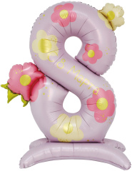 Шар (40''/102 см) Цифра на подставке, 8 Марта, Нежные цветы, 1 шт. в уп.