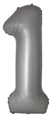 Ф Шар (40''/102 см) Цифра, 1 Slim, Лунное Серебро, Матовый, 1 шт. в уп.