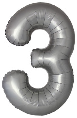 Ф Шар (40''/102 см) Цифра, 3 Slim, Лунное Серебро, Матовый, 1 шт. в уп.