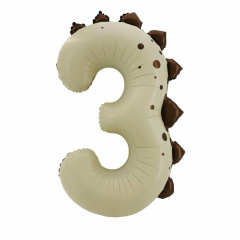Шар (40"/102 см) Цифра 3, Динозаврик, Кремовый, 1 шт. в уп.