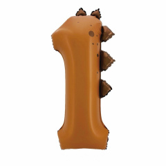 Шар (40"/102 см) Цифра 1, Динозаврик, Коричневый, 1 шт. в уп.