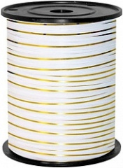 Лента подарочная с золотой полосой (0,5 см x 250 м) Белый