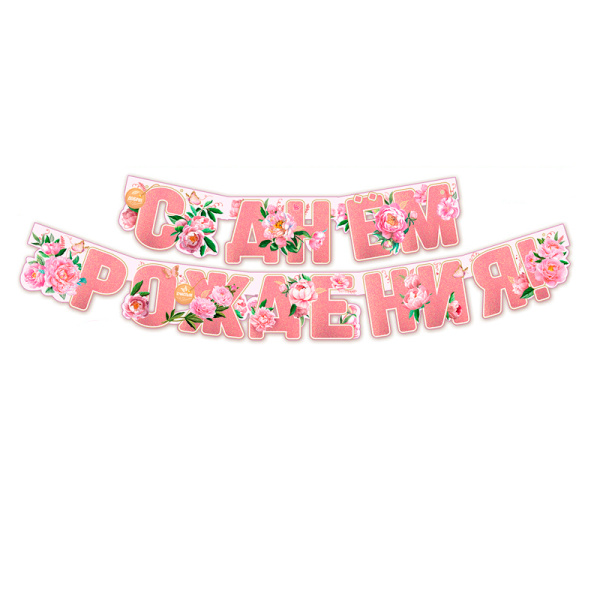 Гирлянда, С Днем Рождения, Цветы! 180 см, 1 уп.