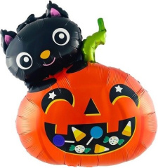 Шар (26''/66 см) Фигура, Котенок с тыквой, 1 шт. в уп.