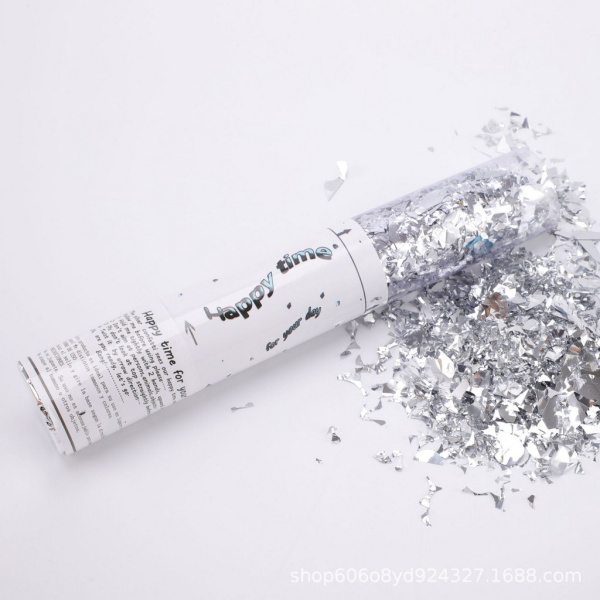 Пневмохлопушка, Серебро, Конфетти дробленое, 40 см, 1 шт.