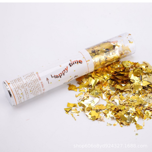 Пневмохлопушка, Золото, Конфетти дробленое, 40 см, 1 шт.