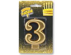 Свеча -цифра "3" Золотая 8см/V