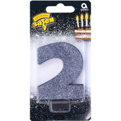 Свеча -цифра "2" Черная глиттер 8см/A