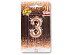 Свеча -цифра "3" Розовое золото 4,5см/V