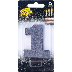 Свеча -цифра "1" Черная глиттер 8см/A