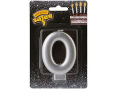 Свеча -цифра "0" Серебряная 8см/V