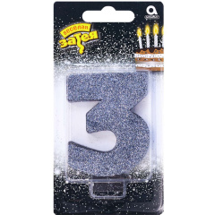 Свеча -цифра "3" Черная глиттер 8см/A